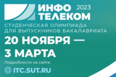 Санкт-Петербургский университет телекоммуникаций вновь проводит международную студенческую олимпиаду «Инфотелеком». К участию приглашаются бакалавры 3–4 курсов телекоммуникационных и технических вузов России и других стран.