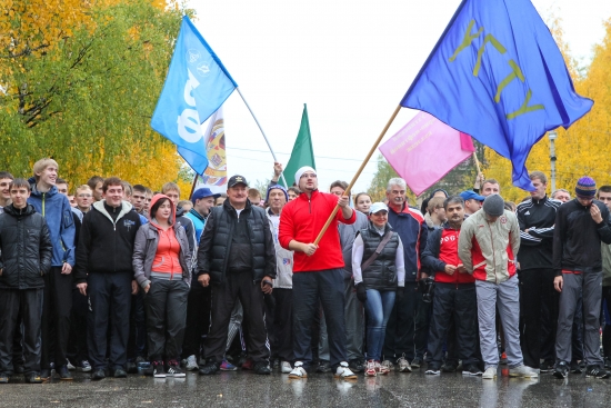 Первыми бросили вызов дождливой погоде депутаты, работники администрации и Совета города. Следом на дистанцию ушли представители общественной организации «Любимый город», члены партии «Единая Россия» и спортивные чиновники. Затем пошла самая многочисленная команда Ухтинского университета: более 200 студентов и преподавателей, более 250 учащихся колледжей и индустриального техникума УГТУ. Студенты бежали дистанцию 2014 метров бок о бок с главой города «Ухта» Романом Мельником, заместителем руководителя администрации города Виктором Тельновым и с самым маленьким участником забега Иваном, который стартовал на руках своего папы проректора УГТУ Дмитрия Безгодова.