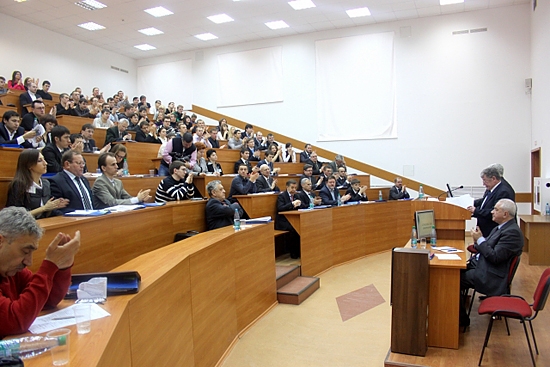 С приветственным словом к участникам конференции обратился ректор университета Н.Д. Цхадая. Николай Денисович подчеркнул, что проблемы разработки высоковязкий нефтей и битумов являются одними из наиболее наукоемких и перспективных с точки зрения создания инновационных технологий с последующим их распространением не только в нефтегазовой отрасли, но и в других сферах экономики. Ректор УГТУ также отметил, что именно в Ухте сложились уникальные условия для исследования всего комплекса проблем, связанных с разработкой и эксплуатацией месторождений высоковязкой нефти.
