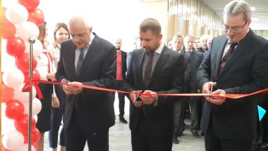 Открытие площадки ОАО «Северные МН». Ленточку перерезают В. М. Гайзер, П. А. Ревель-Муроз, Д. Н. Цхадая