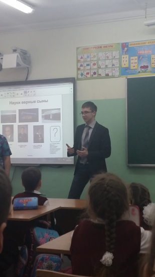 19 февраля директор ЦКПНР УГТУ — Захаров Д. Ю. стал гостем на открытом уроке 1-го класса 10-й школы, посвященном науке.