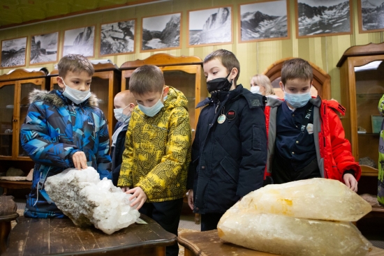 К восторгу маленьких «спелеологов», по рукотворной пещере можно было не только прогуляться, но и потрогать руками правдоподобные сталактиты и сталагмиты. Кстати, не только любоваться можно было и настоящими образцами кварца, песчаника, известняка и других пород, добытыми в геологических экспедициях и представленными в музее УГНК, посещением которого продолжилась экскурсия.
