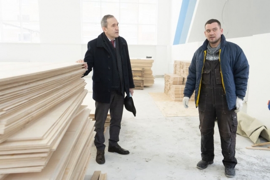 Ректор УГТУ проверил ход работ по капитальному ремонту спортзала горно-нефтяного колледжа Индустриального института (СПО) УГТУ. Руслан Викторович пообщался со строителями, выполняющими ремонтные работы.