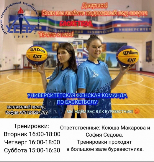 Девушкам! У нас для вас отличная новость! Открыт набор в женскую баскетбольную команду УГТУ! Если вы любите активный образ жизни и готовы развиваться в спортивном направлении, то это отличный шанс для вас. Присоединяйтесь к нам.