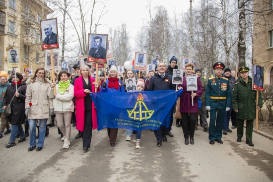 Более 300 представителей Ухтинского государственного технического университета — ректор, преподаватели, сотрудники и студенты — приняли участие во всероссийской акции «Бессмертный полк». Особую значимость акции придало то, что среди портретов героев войны были фотографии преподавателей и сотрудников университета - фронтовиков, чьи имена навсегда вписаны в историю вуза.