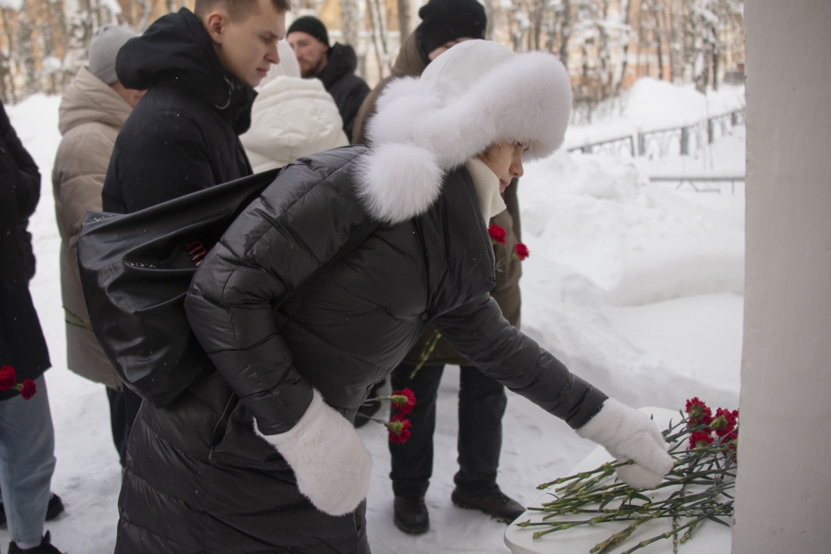 После минуты молчания преподаватели, студенты и сотрудники УГТУ возложили цветы к мемориальной доске.