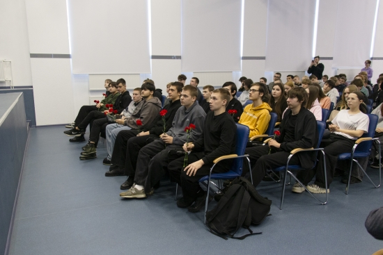 Мероприятия в честь их подвигов началось с возложения цветов к мемориальной доске, установленной на фасаде корпуса «Д» в честь студента УГТУ, кавалера ордена Красной Звезды Сергея Воронова. Начальник управления комплексной безопасности Павел Богачик отметил: «Если Родина будет полна такими ребятами, как Сергей Воронов, то нас ждёт светлое будущее. Главное — мы помним наших героев; каждому из них — огромное спасибо». К его словам присоединились председатель городского совета ветеранов Александр Шаховцев и председатель общественного совета Ухты Абдул Абидов, которые поделились воспоминаниями о Сергее Воронове и пожелали всем мирного неба.