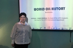 28 февраля 2022 года начальник Международного отдела и заведующая музеем УГТУ Анжела Рочева провела лекцию, посвящённую истории нефтедобычи в России и мире. Этим мероприятием Анжела Вячеславовна положила начало новому лекторию, рабочим языком которого будет английский.
